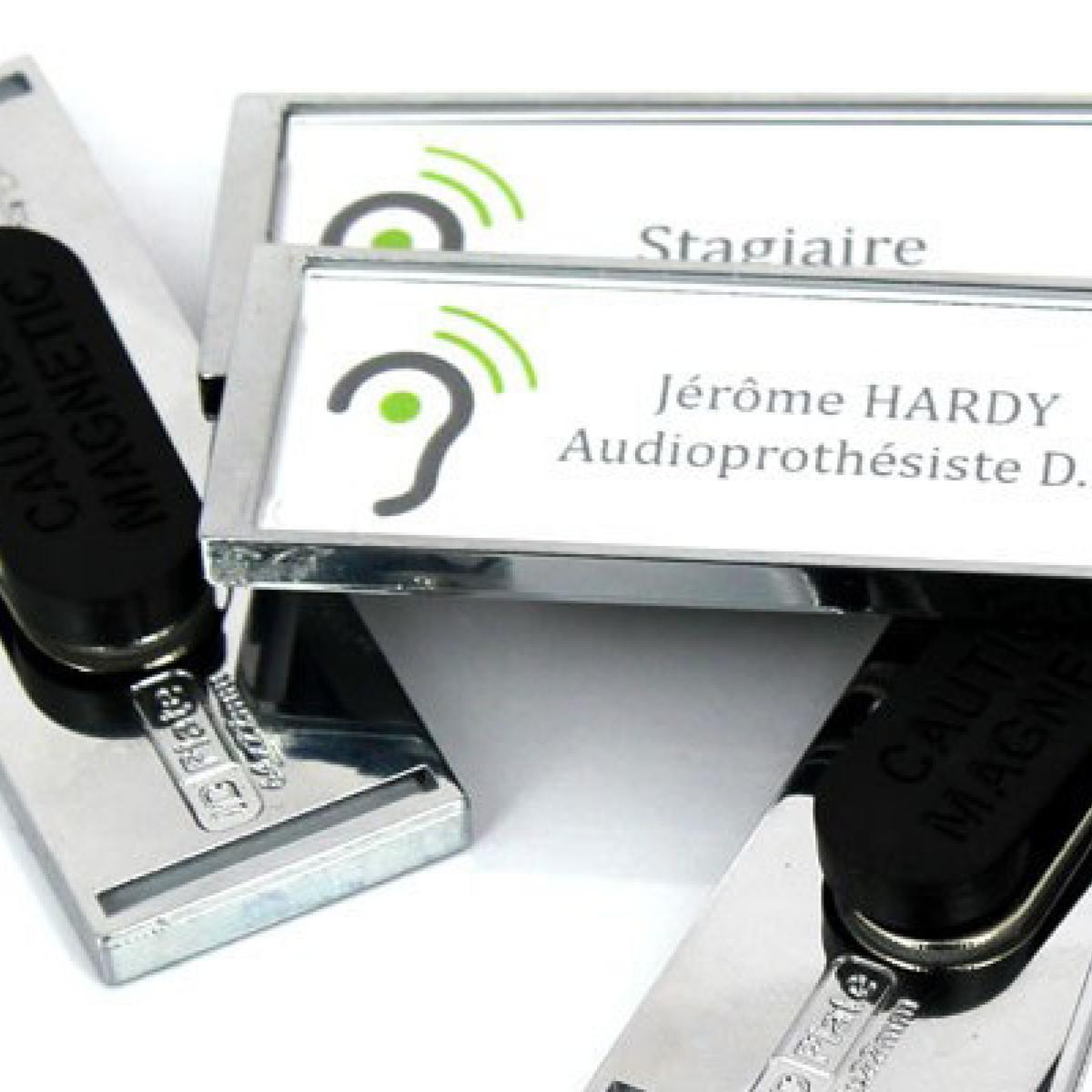 Badge d'identification avec attache aimantée