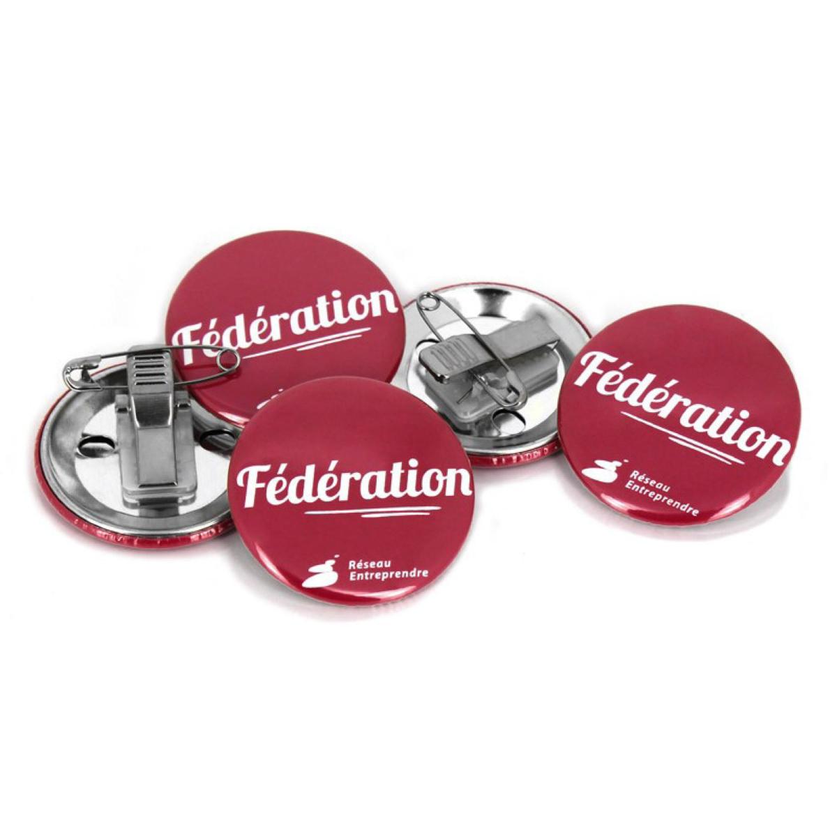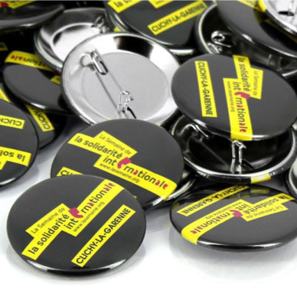 Badge rond avec coque en métal. Disponible avec plusieurs diamètres / Epaisseur 3 mm. Impression de haute qualité, protégée par un film plastique. Epingle ou attache aimantée pour la fixation du badge.