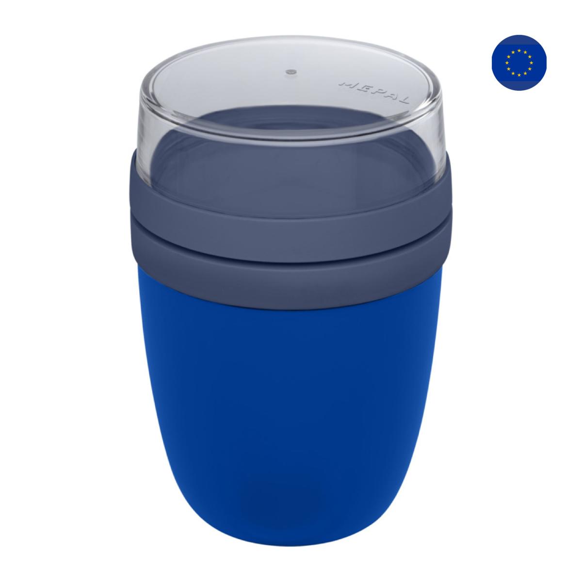 Bocal à déjeuner avec deux compartiments différents pour garder les différents ingrédients séparés. Les deux récipients disposent d'un couvercle séparé et restent donc propres. Le contenu du récipient transparent supérieur est de 200 ml, ce qui signifie qu’il peut contenir environ 75 grammes d’aliments solides. La capacité du récipient inférieur est de 500 ml.