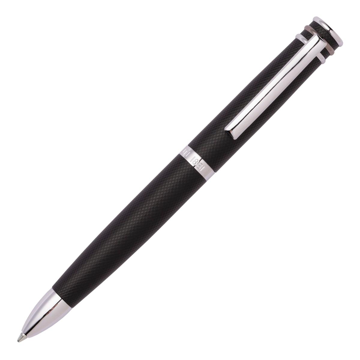 Parure stylo bille et portefeuille de la marque Cerruti 1881. Élégance et raffinement. Stylo bille en laqué noir. Portefeuille en cuir véritable noir. Compartiment pratique. Design intemporel.
