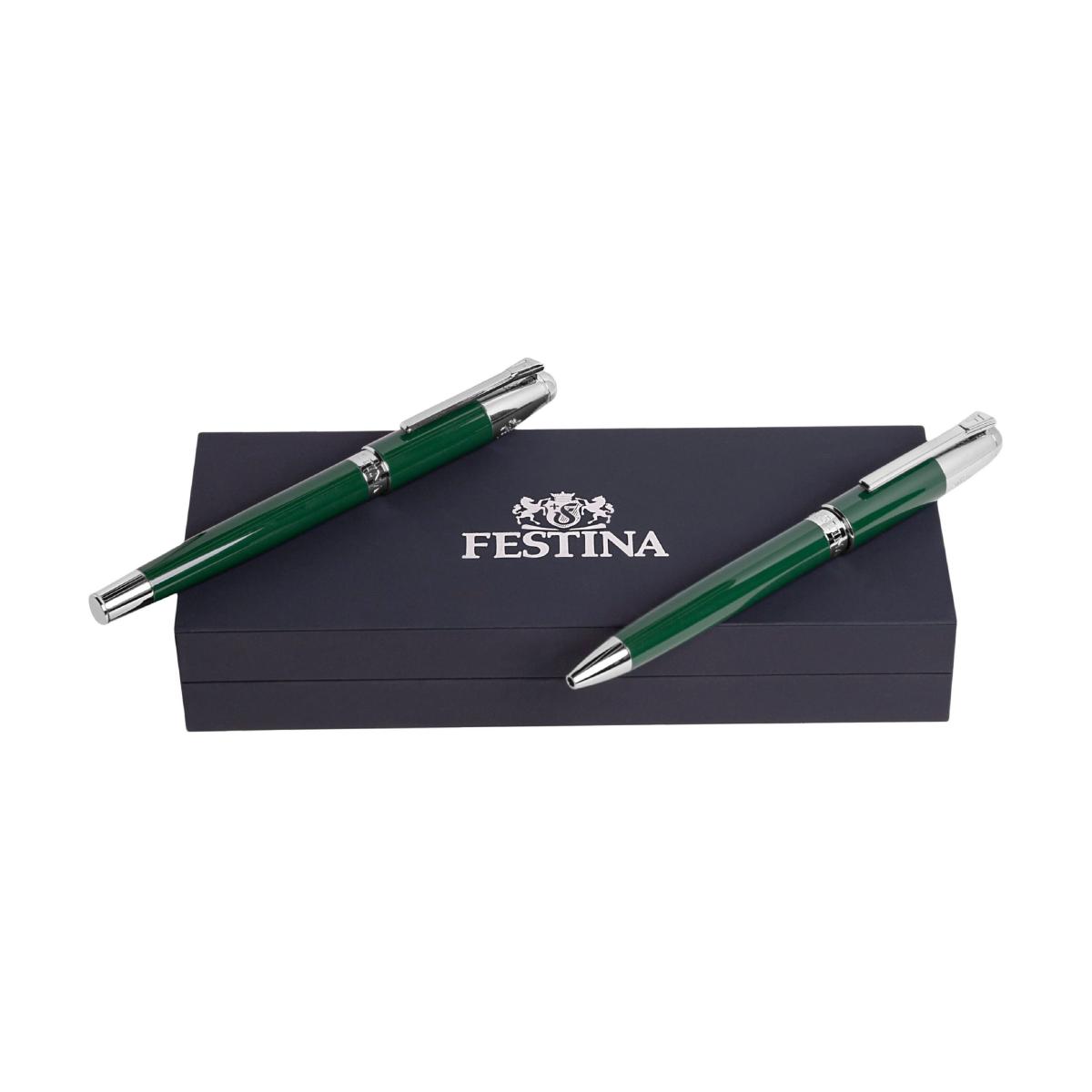 Parure stylo bille et stylo plume, de la marque Festina. Design intemporel. Stylo bille et stylo plume assortis. Matériaux haut de gamme. Élégance classique.