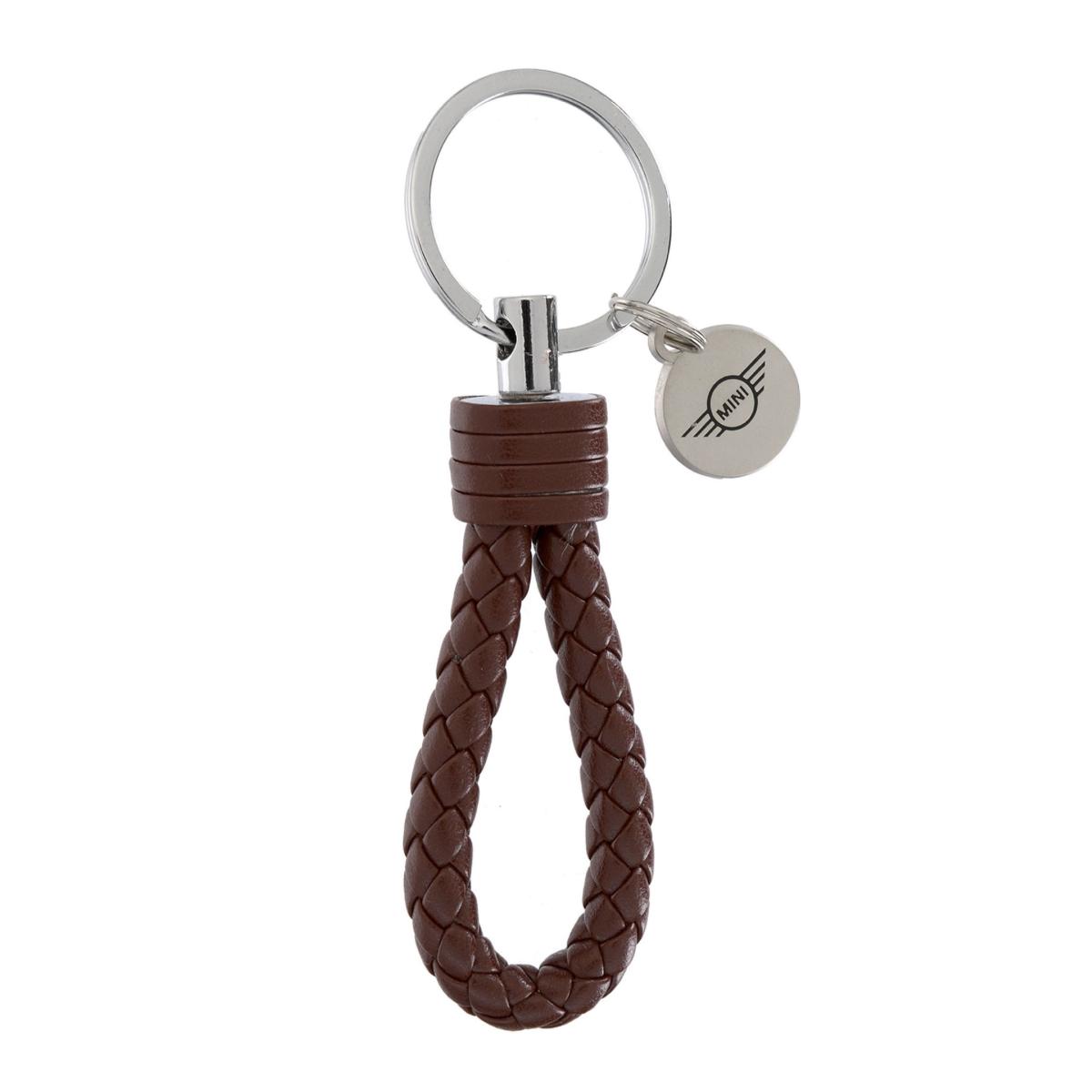 Porte-clés boucle en PU et breloque en zamac (finition nickel brillant). Dimensions breloque : 24 x 2 mm.