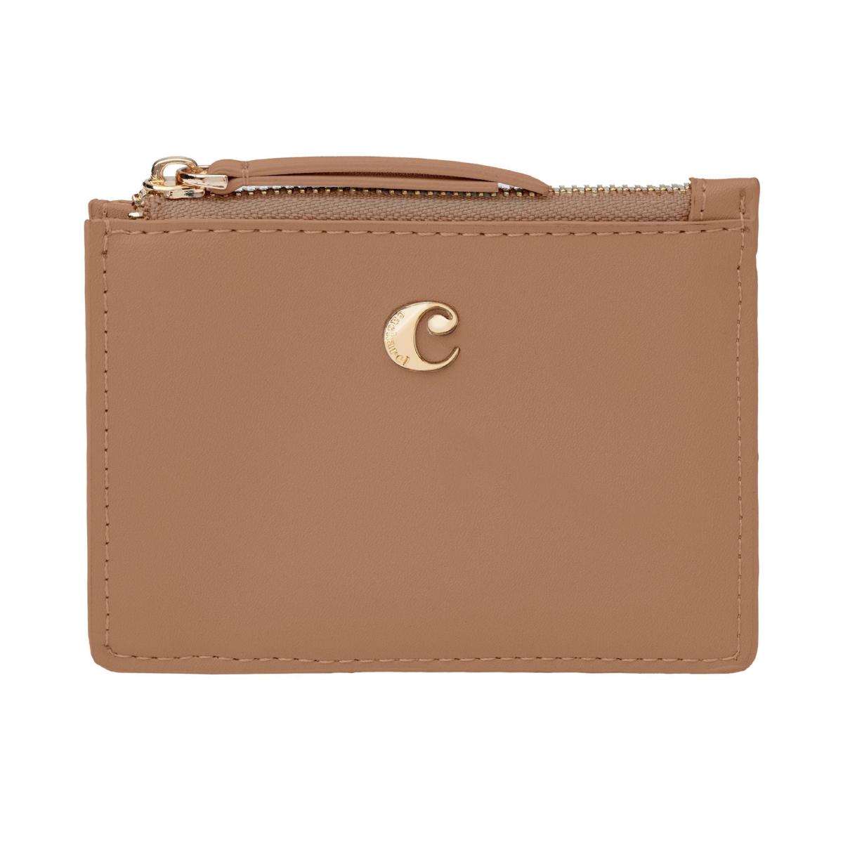 Porte-monnaie de la marque Cacharel. Polyvalence et praticité. Cuir végétal lisse. Plaque "C" signature de Cacharel. Palette de couleurs sophistiquées. Design compact et fonctionnel.
