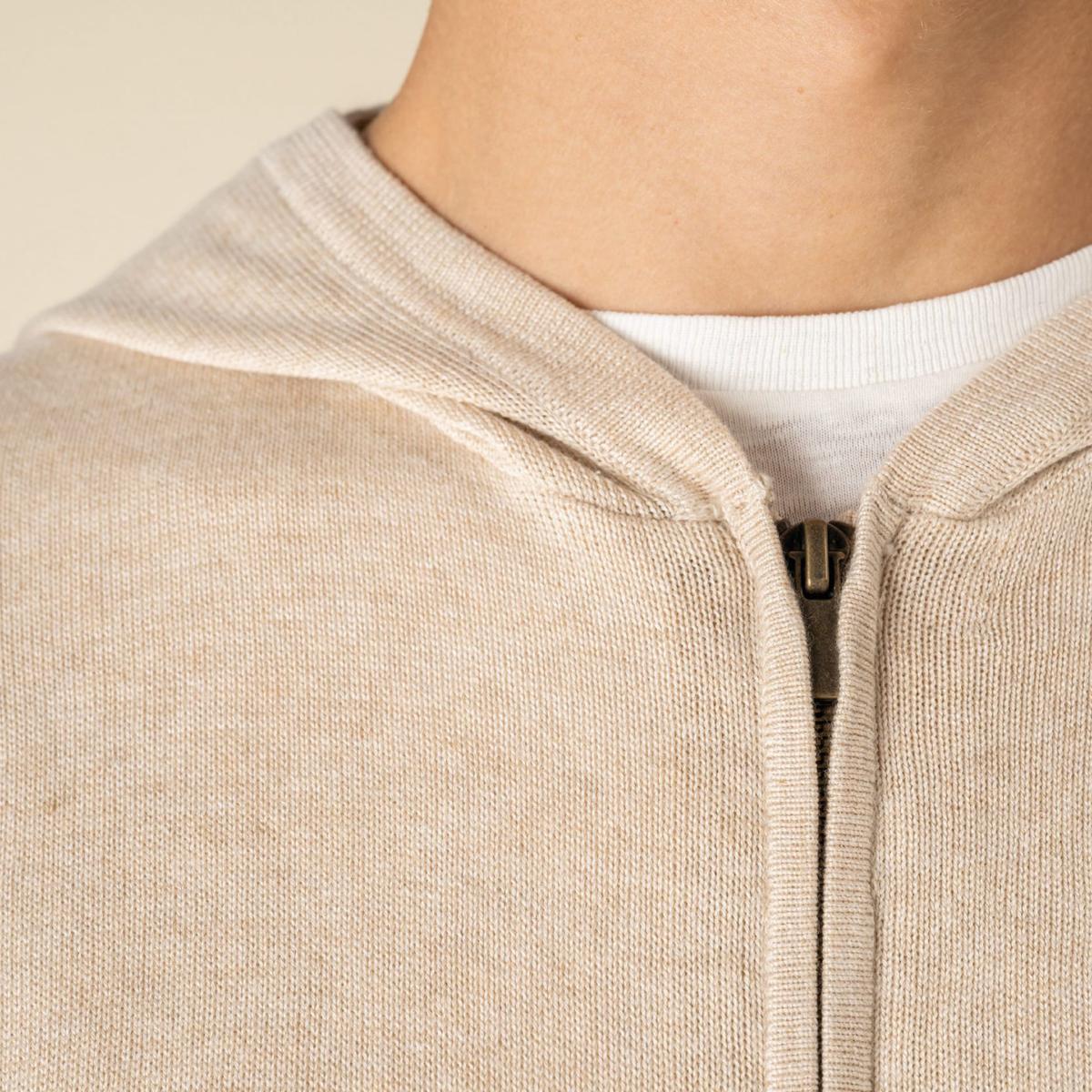 Pull à capuche conçu avec du Lyocell, une fibre écologique végétale. Couple ajustée. Tissu respirant et résistant. Bande de propreté en matière principale. Zip en métal recyclé avec finition bord-à-bord. Bord côte 1 x 1 au bas de vêtement et bas de manches. Capuche 2 panneaux sans cordon de serrage.