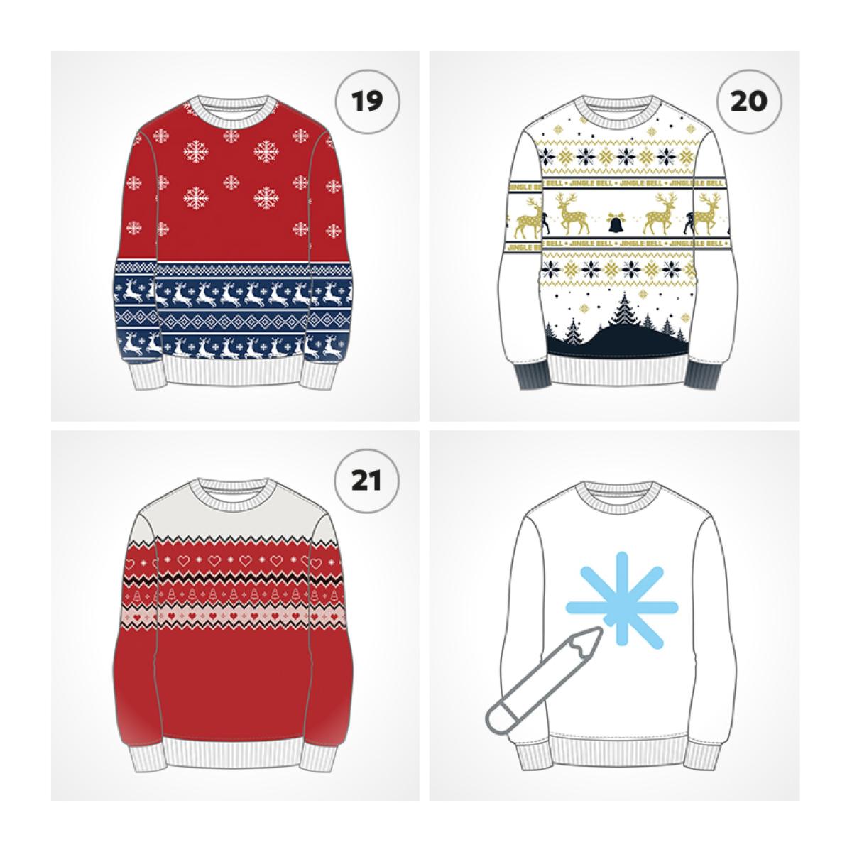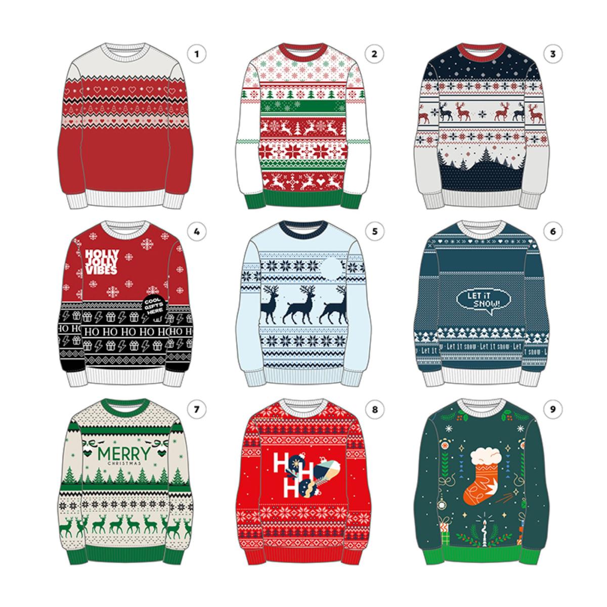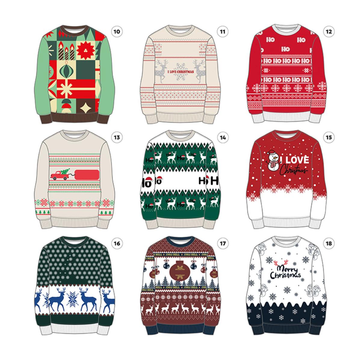 Pull de Noël tricoté sur-mesure. Taille Unisexe. Jusqu'à cinq couleurs disponibles.
