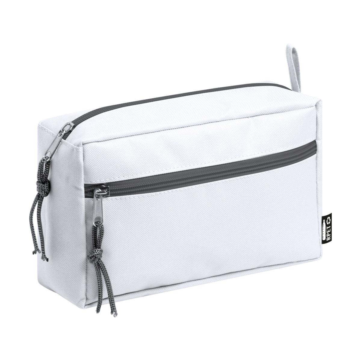 Trousse à cosmétiques composée deux compartiments zippés. Matière : 100% polyester recyclé / 370 g/m2.