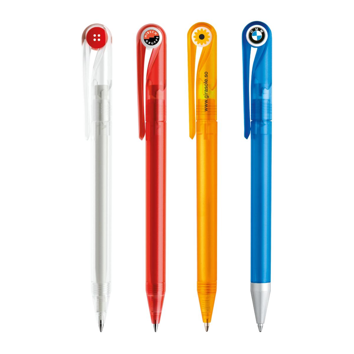 Stylo à bille de la marque Prodir, avec système pivotant et corps en plastique (ABS) 100 % recyclé en noir et en blanc, 50% de recyclat dans les autres couleurs. Version standard disponibles dans de nombreuses couleurs.