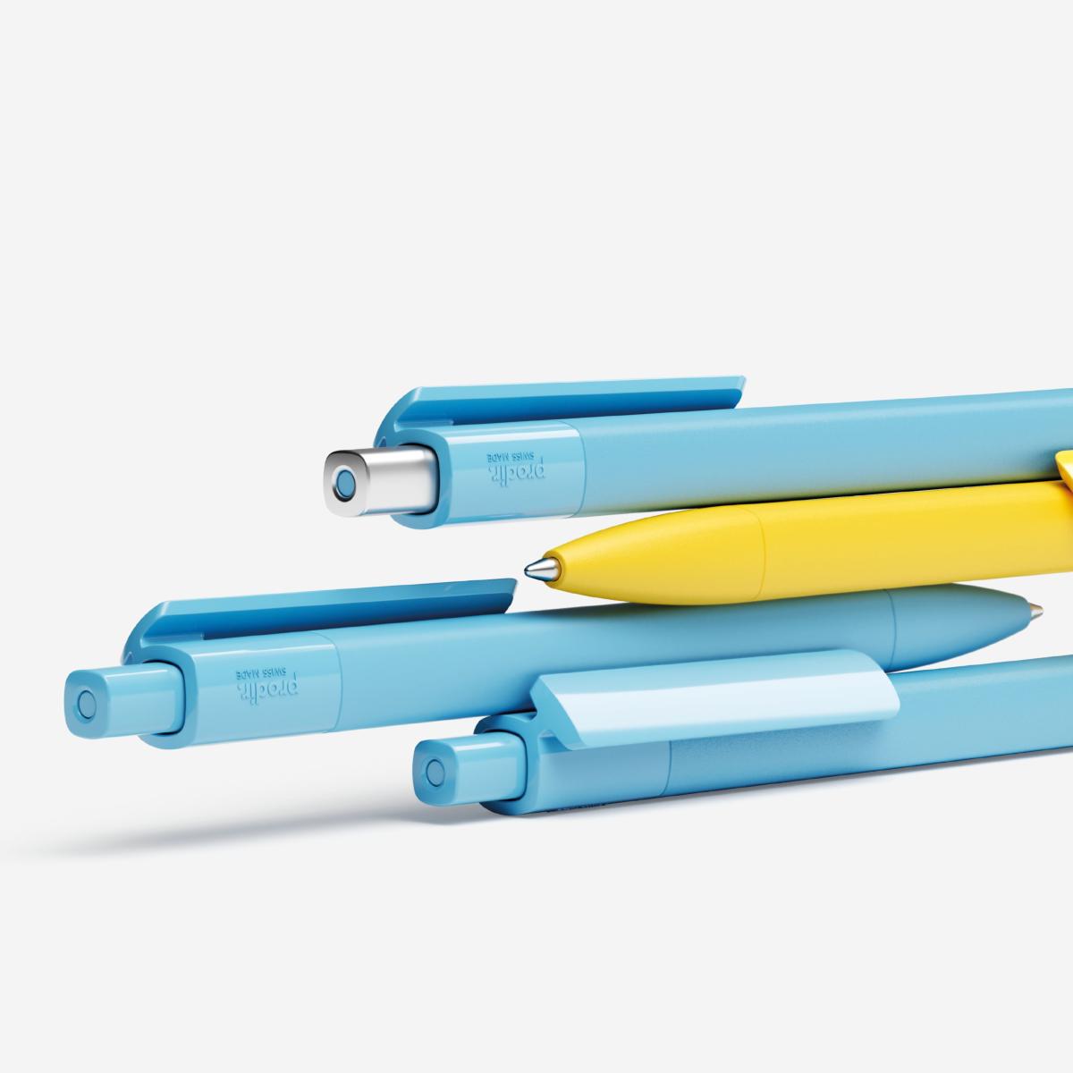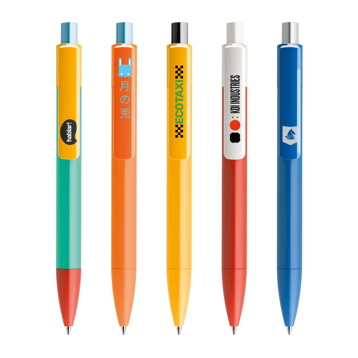 Stylo à bille de la marque Prodir, avec bouton poussoir et corps en plastique (ABS) 100 % recyclé en noir et en blanc, 50% de recyclat dans les autres couleurs. Finition soft-touch. Version standard disponible dans de nombreuses couleurs.