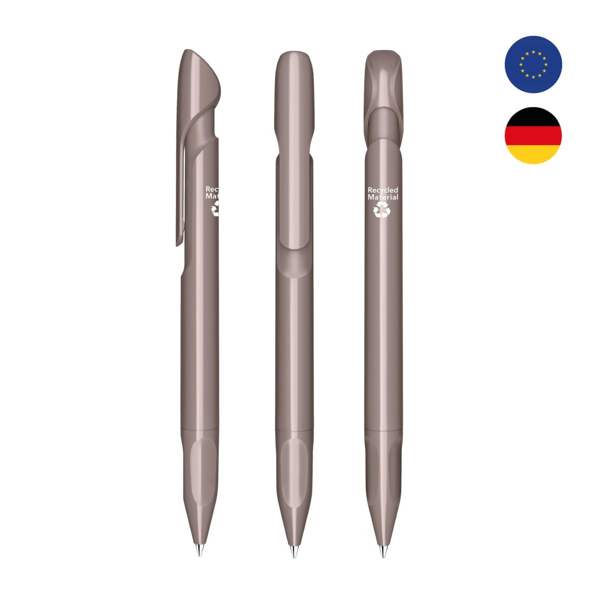 Stylo à bille rétractable senator®. Toutes les parties visibles du stylo sont injectées à partir de plastique recyclé. Chaque stylo porte au dos l'inscription "Recycled Material". Surface du corps mate brillante. Longueur d'écriture jusqu'à 5 000 mètres. Encre bleue ou noire. Quantité minimum : 100 pièces - Unité de vente : 100 pièces. Made in Germany.