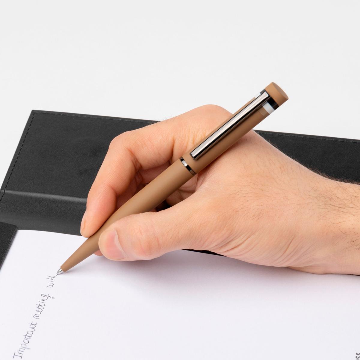 Stylo bille, de la marque HUGO BOSS. Surface douce au toucher. Logo signature et rayures iconiques.
