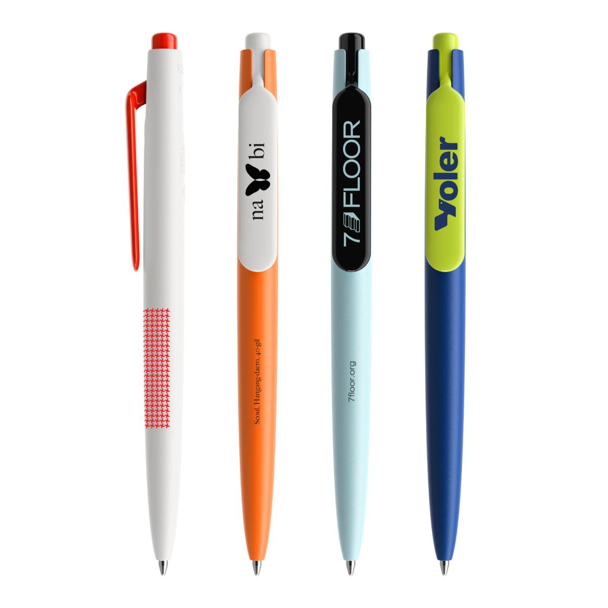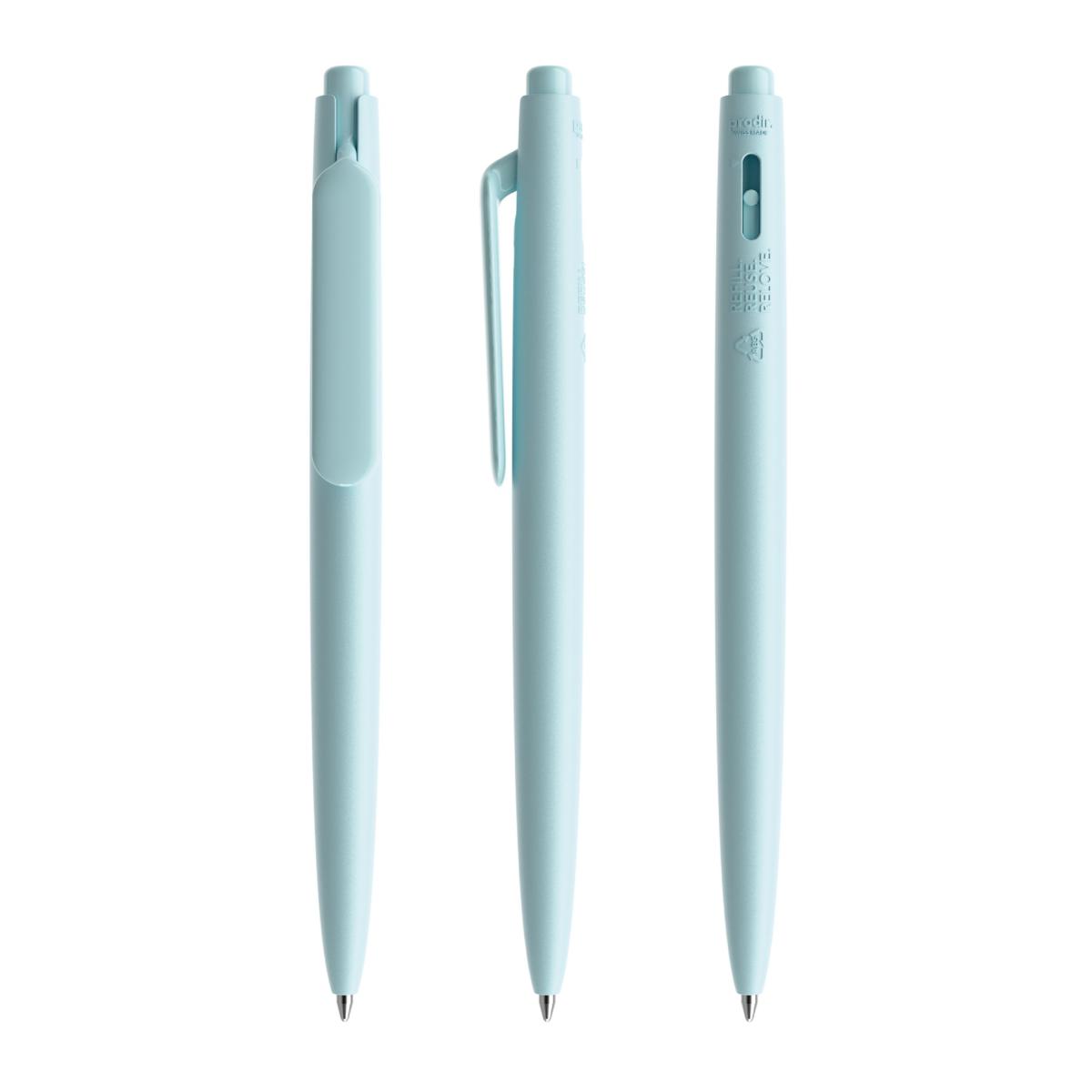 Stylo à bille avec bouton poussoir et corps en plastique (ABS) 100 % recyclé pour les versions noires et blanches, 50% pour les autres coloris. Rechargeable. Versions standard disponibles en dix couleurs mates. Corps mate et clip poli.